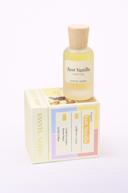 ESSNTL NOTES Just Vanilla Perfume - Creamy & Sweet Gourmand Vanilla Fragrance | 50ml Eau de Parfum | Ice Cream-Like, Soft & Irresistible Scent | Long-Lasting Comfort Perfume for Men & Women | Pure Vanilla Delight with a Sugary Hug